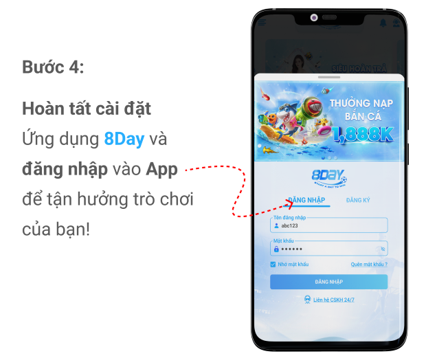 Đăng nhập tài khoản vào 8Day