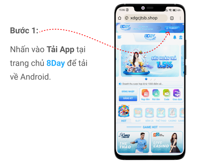 1 Đầu tiên hãy truy cập vào web chính thức của nhà cái rồi tìm mục “ Đăng nhập 8Day” .